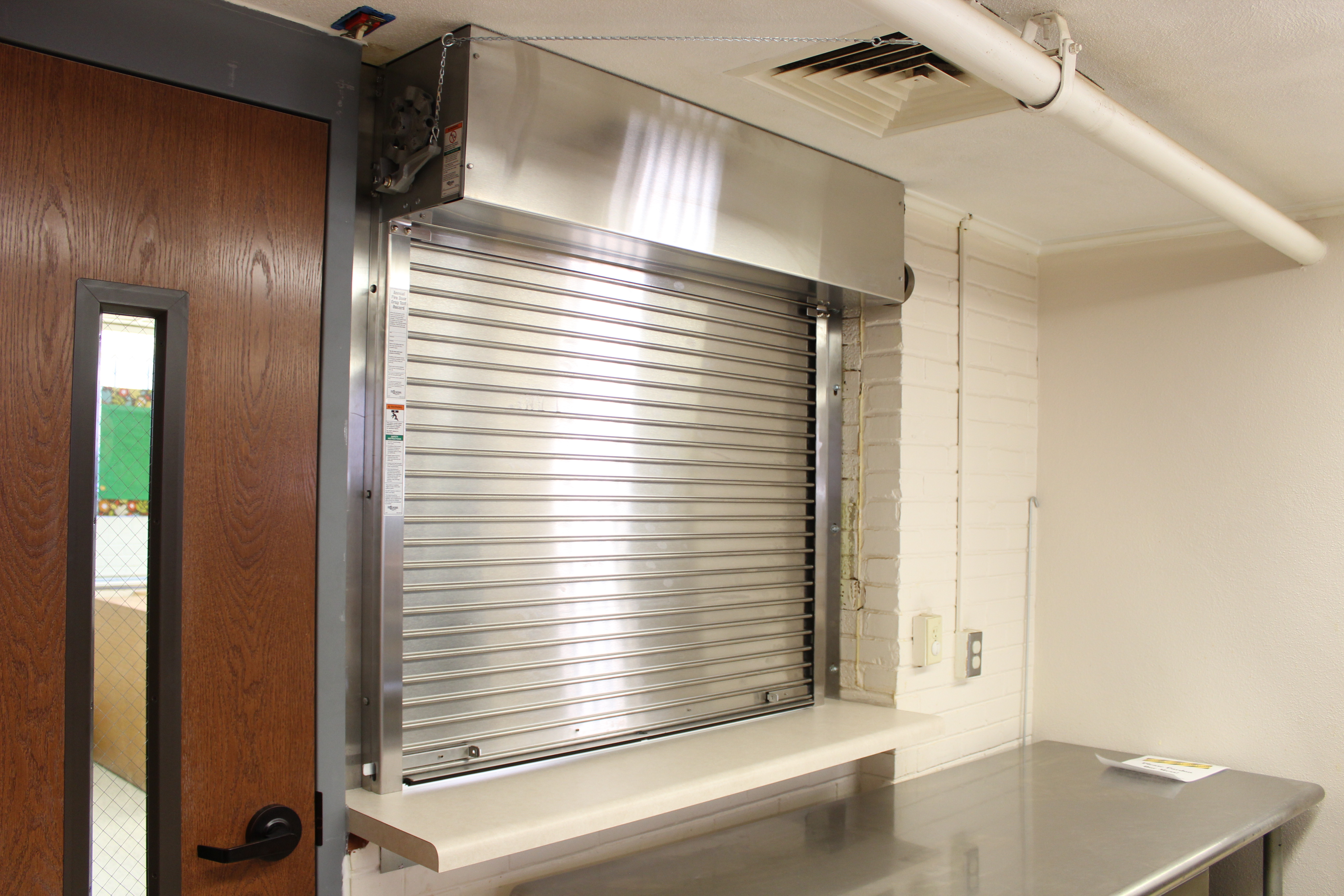 Our Rolling Counter Fire Shutters with Integral Frame and Sill (counter top) are designed with reduced coil, bracket and header size (8” minimum) to fit tight clearances. These shutters provide:
