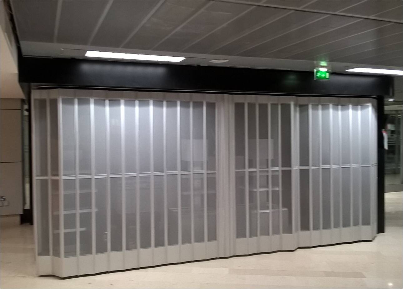 Perforated with pattern of slots that provides a high level of security with visual access and air flow. Interlocking components prevent forced entry. Lighter than glass inserts; requiring less bulkhead support and easier to operate. Excellent for storefront applications.